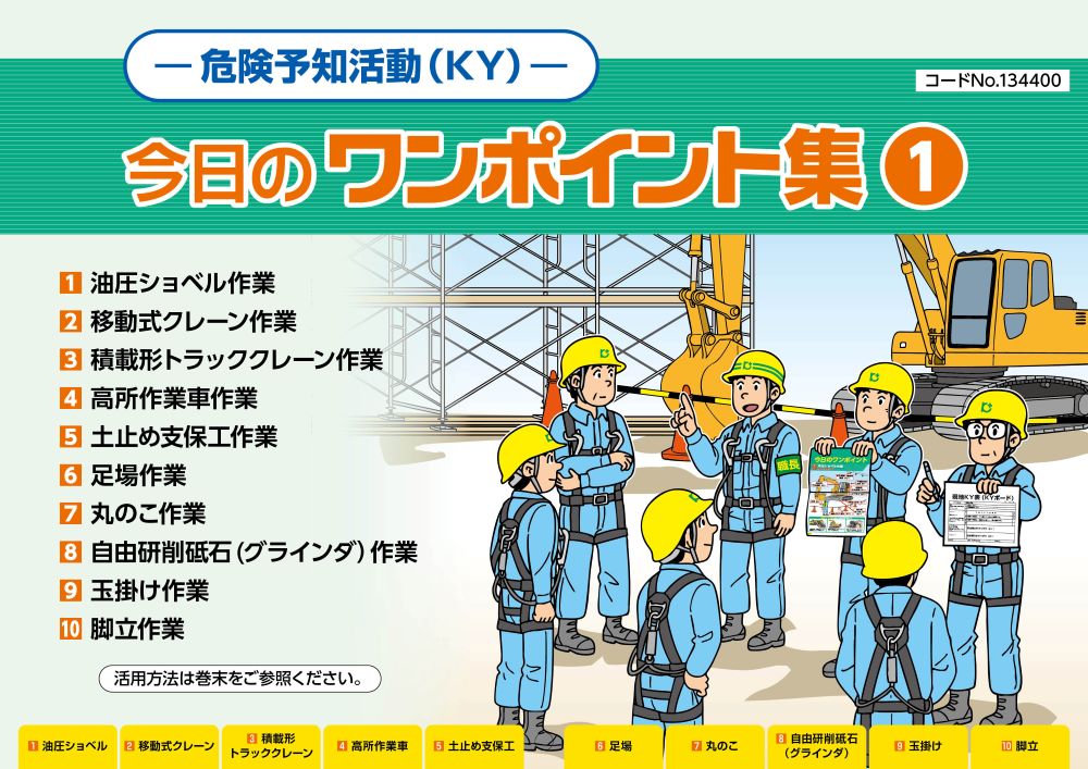 建設作業所における安全施工サイクルで職長・安全衛生責任者が効果的に危険予知活動を進めることができるよう、建設現場の多くの作業で行う代表的な作業のイラストに、今日行う作業に沿った具体的な行動目標につながる危険のポイントをあらかじめ示した「今日のワンポイント集①」を作成しました。 奥付 初版 令和7年12月1日
