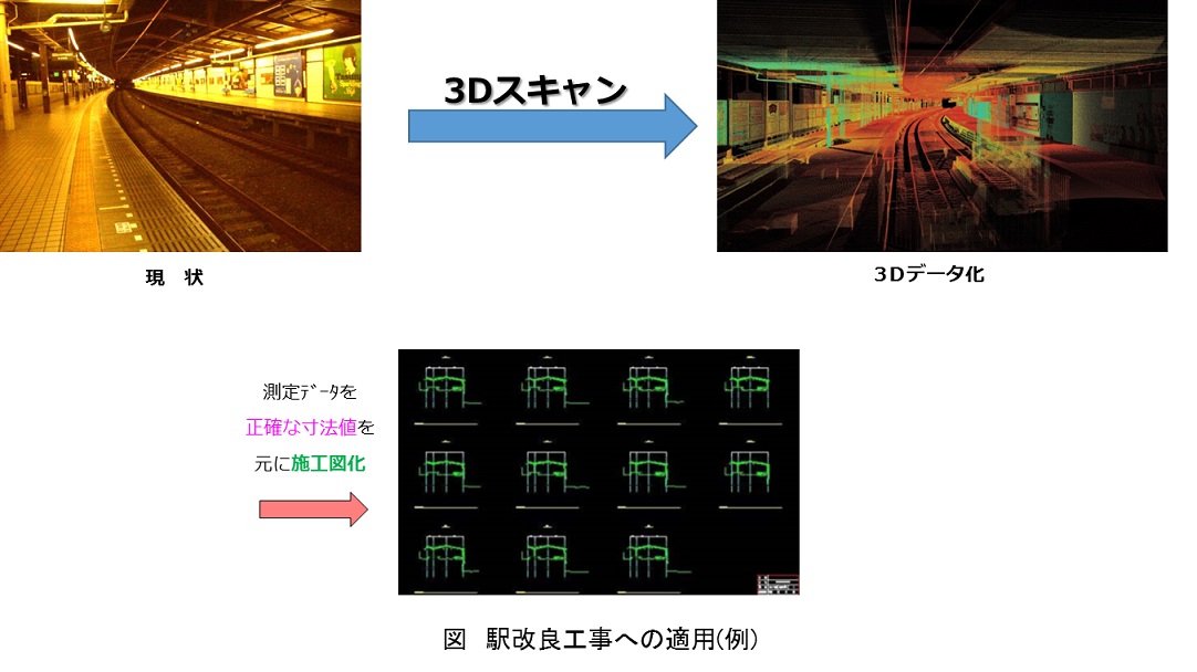 改良工事などで既存状況を3次元データ化して、事前に施工計画検討を実施する。