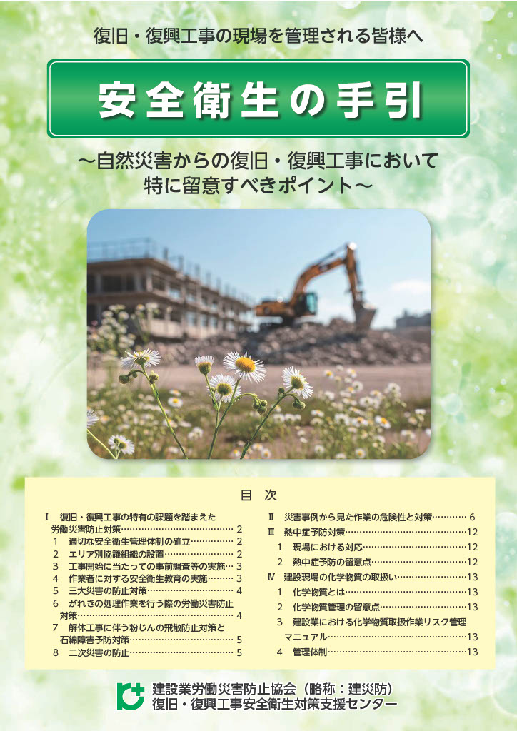 自然災害関連工事の特徴を踏まえ、労働災害防止の課題ごとに留意すべき事項をまとめた「安全衛生の手引き-ワンポイント安全衛生教育用教材-」をリニューアルしました。